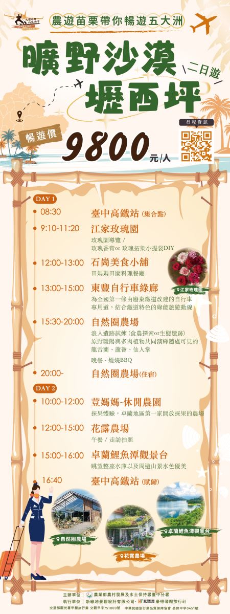 農遊苗栗帶你暢遊五大洲,江家玫瑰園、自然圈農場、卓蘭鯉魚潭觀景台…等,歡迎一同來探訪。