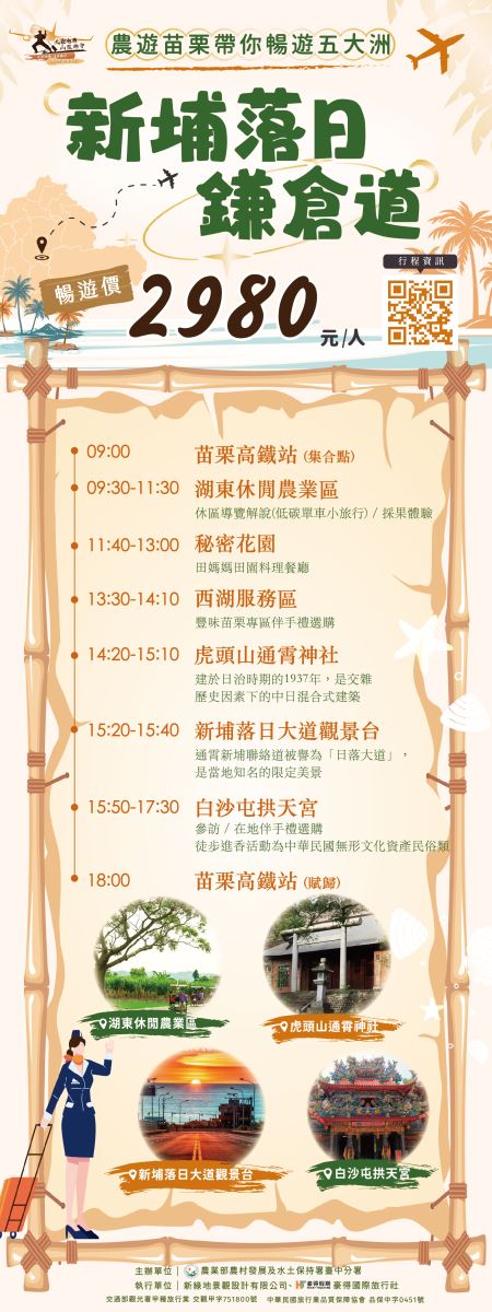 農遊苗栗帶你暢遊五大洲,新埔落日、白沙屯拱天宮…等,等你來探訪。
