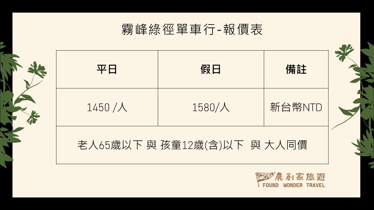 PS : 如果非開團日期,如人數達六位以上,可依照客戶時間需求包團出發。