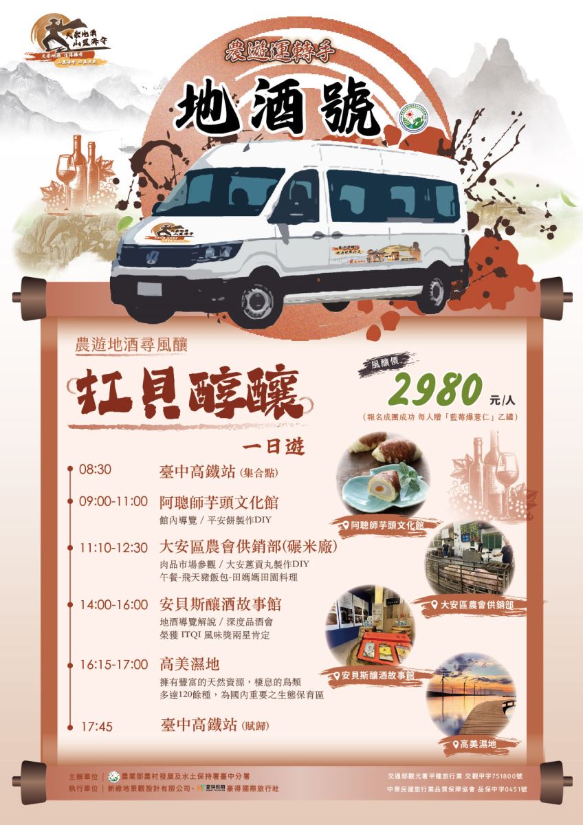 農遊地酒尋風釀,帶你暢遊阿聰師芋頭文化館、安貝斯釀酒故事館…等。