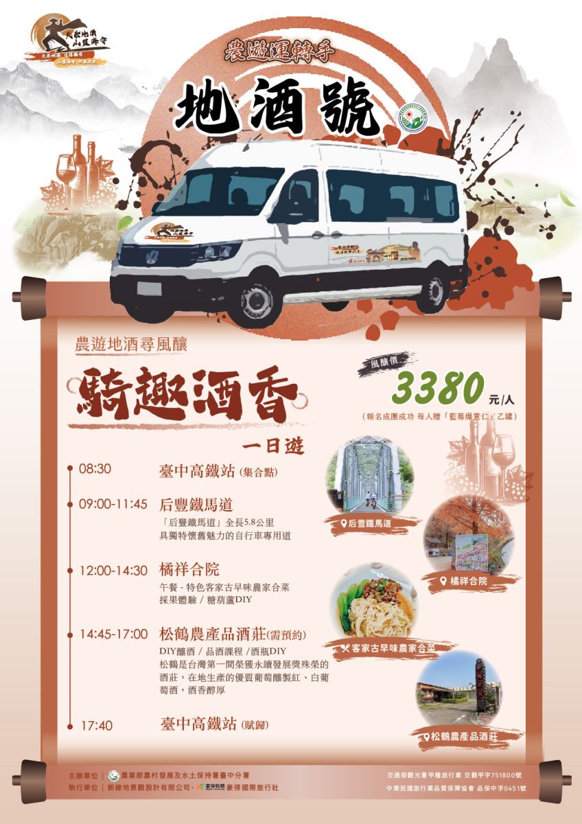 農遊地酒尋風釀,帶你暢遊后豐鐵馬道、松鶴農產品酒莊…等。